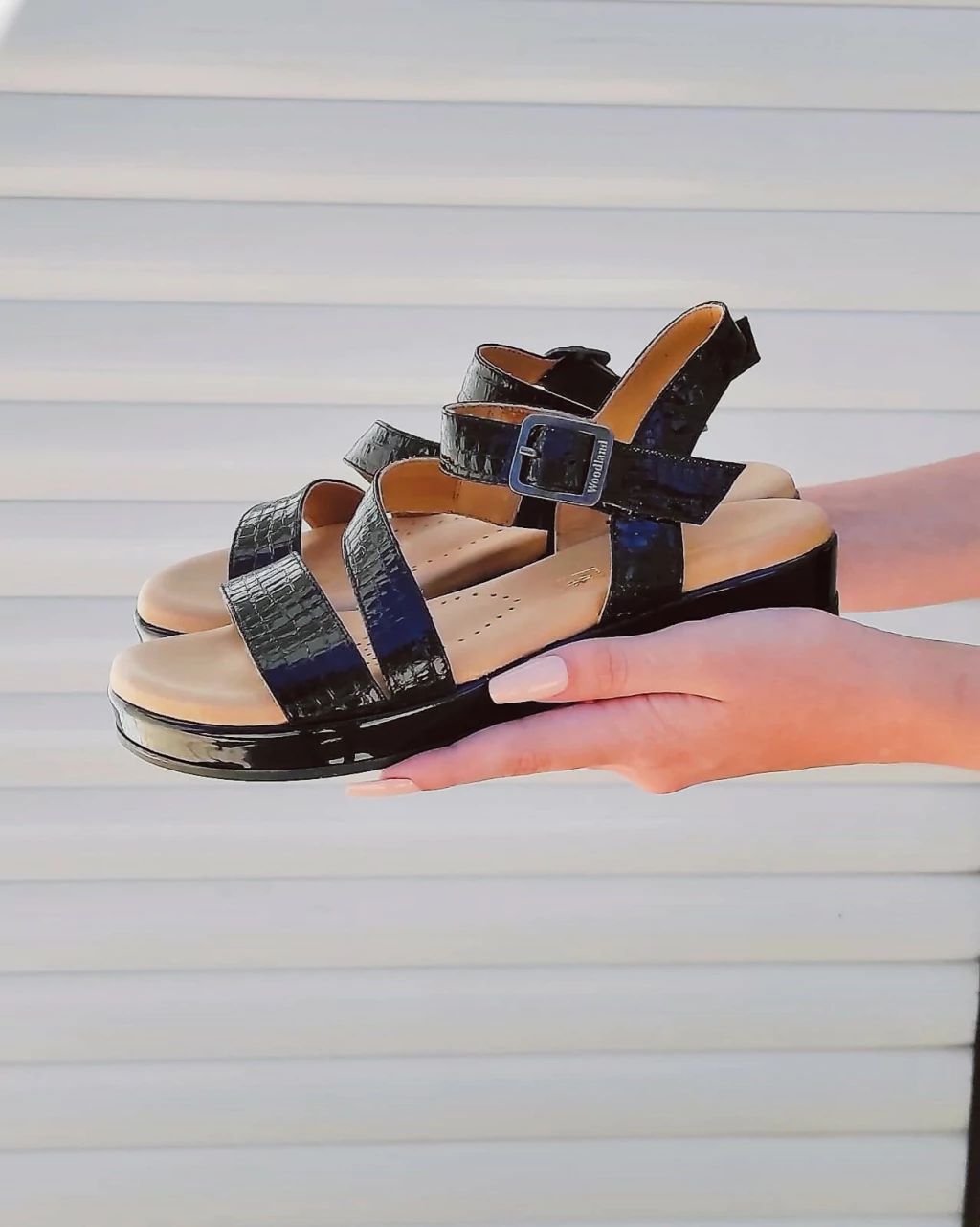 Descubrí las sandalias FRIDA, diseñadas para brindar comodidad y estilo en cada paso. Con una pulsera al tobillo y una tira diagonal con elástico que asegura un ajuste perfecto, estas sandalias son de cuero y están forradas en cuero vacuno de alta calidad.