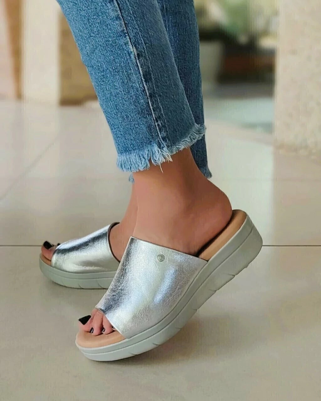 Su base inyectada de goma tiene una altura de 5 cm en el talón y 2,5 cm adelante, brindando estabilidad y confort en cada paso. Ideales para quienes buscan estilo y bienestar en un calzado duradero.